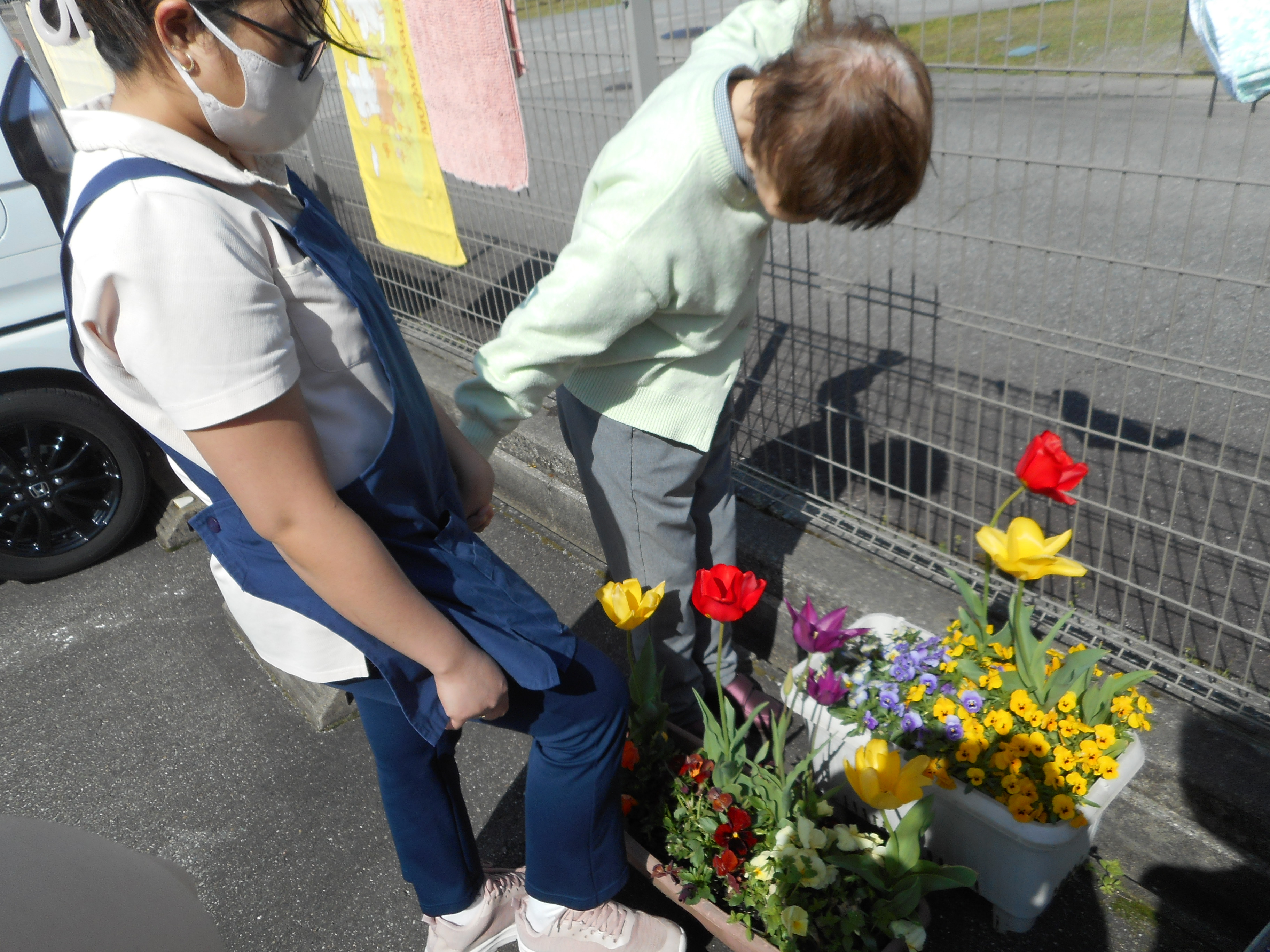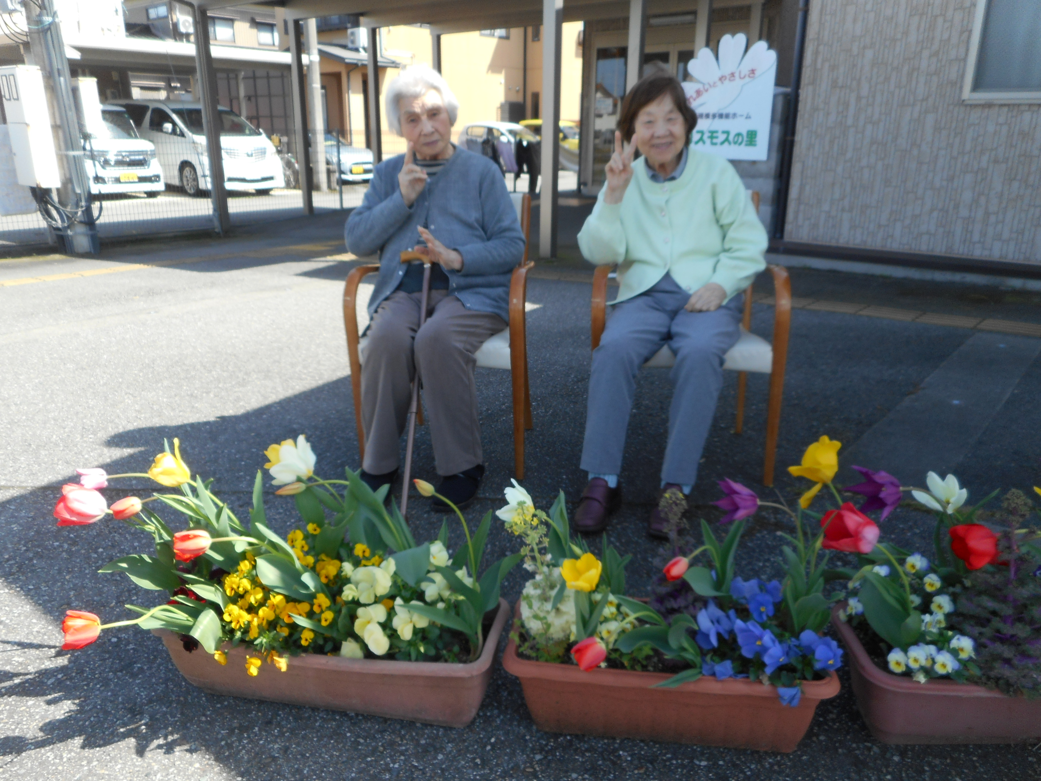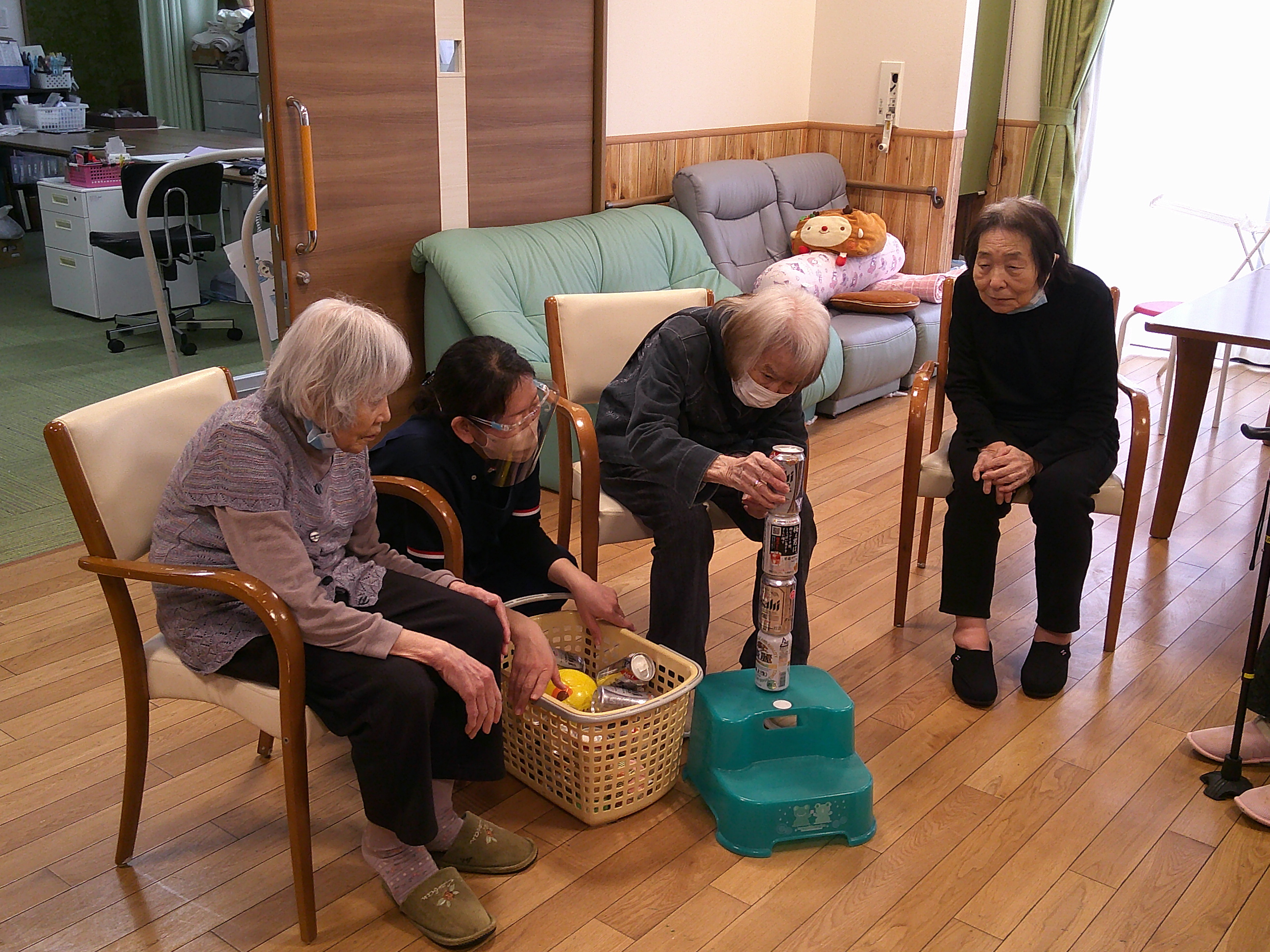 春祭り 2026-04-12 (日) コスモスの里にお神輿がきました チューリップの花が〜 2026-04-11 (土) ♪咲いた〜咲いた〜チューリップの花が〜♪ お花見弁当 2026-04-10 (金) お花見弁当いただきました。皆さん夢中で食べておられました。 お花見弁当 2026-04-08 (水) なにから食べようかしら お花見@ 2026-04-08 (水) 常願寺公園へお花見に行ってきました。 春を感じます 2026-04-03 (金) 桜の花を眺めながら、季節を感じています。 サクラ咲いた!! 2026-04-03 (金) 温かくなり、桜が一気に咲き始めましたね♪ 晴れ間を見つけて、みんなでお花見です! きれいですね〜(≧▽≦) お花見 2026-04-03 (金) 近所の大江干公園の桜が満開でキレイでしたよ! 高く高く 2026-04-01 (水) 空き缶をどれだけ積めるか競争です。優勝は13個積み上げ、自分の身長を超えていました。 お釈迦だんご 2026-03-20 (金) 今日のおやつはお釈迦だんご入りぜんざい!とってもおいしかったです。