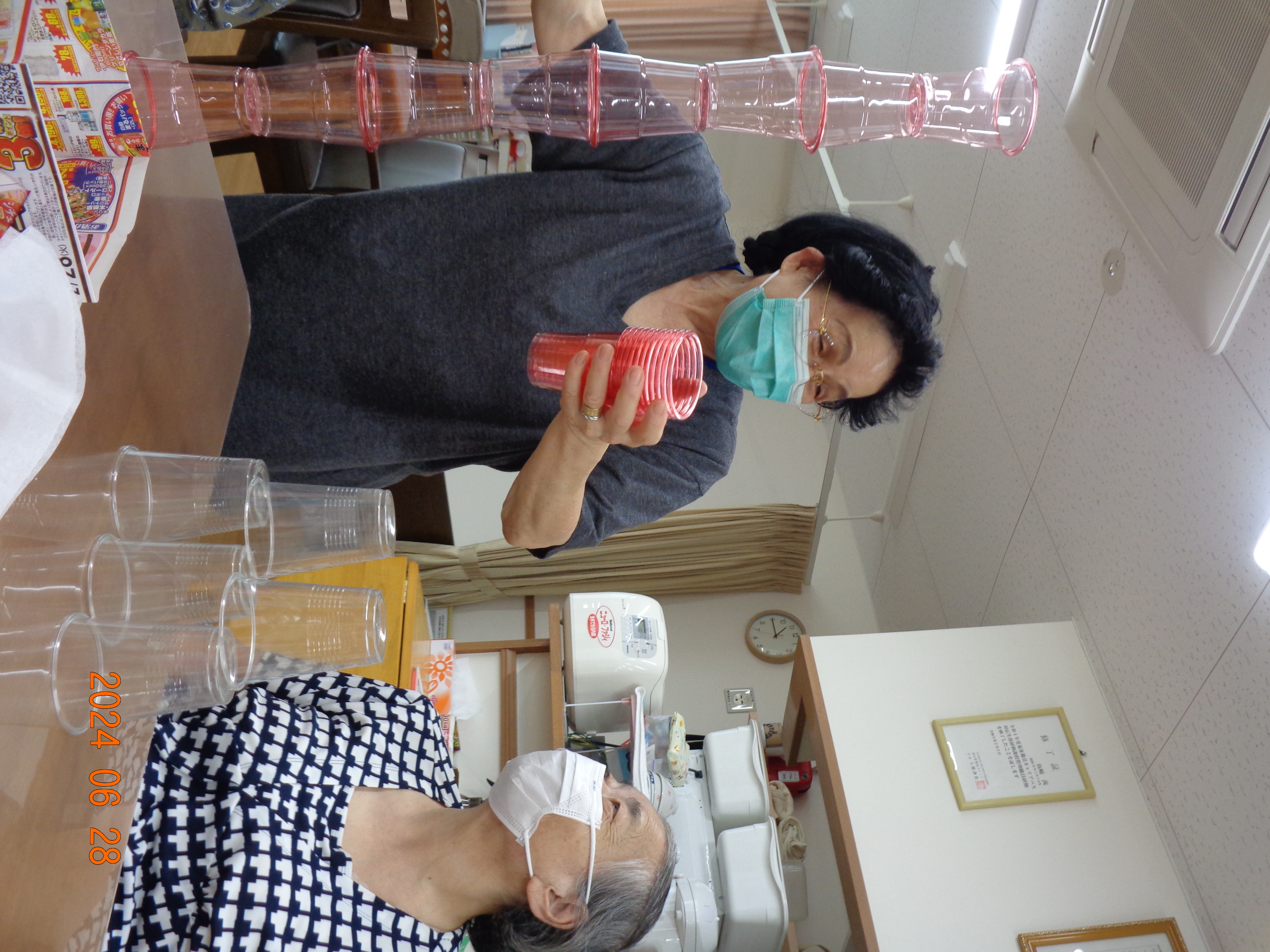 貼り絵 2025-01-04 (土) 年の初めに縁起物の貼り絵をしました。 お茶会 2025-01-04 (土) 大変、結構でございます。 お正月 2025-01-02 (木) あけましておめでとうございます。玄関を飾りつけ、それぞれにお正月を楽しみました。 書き初め 2025-01-02 (木) 新しい年を迎えて今年も元気に頑張るぞ〜!! ハイ!チーズ! 2024-12-28 (土) 可愛い雪だるまさんとツーショット!! ☆ Merry Xmas ☆彡 2024-12-25 (水) 今年はスノードームを作りました!ケーキも、自分で作るとペロリと食べられますね!( *´艸`) クリスマス 2024-12-24 (火) 今年はみんなで手作りケーキ!!好きなものをトッピングしてみました。 皆で外食 2024-12-15 (日) 年末が近いので夕食はお寿司です。皆ペロッと完食されました。 ラーメンの日 2024-12-13 (金) 「寒い日はこれだよね!!」と皆でフーフ−しながら美味しく頂きました。 おでんパーティ 2024-12-11 (水) 自分で食べたいおでんの具を選びたくさん頂きました