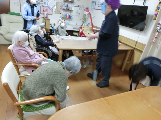 夏フルーツ食す 2024-08-09 (金) 西瓜にマクワ瓜!!夏を漫喫しました。 スイカ 2024-08-07 (水) スイカを食べれば夏って感じ〜甘ーい!! パン屋さんが来ました 2024-08-06 (火) 訪問パン屋さんが来ました。皆で楽しくお買い物です。ご自分の好きなパンを買われました。 夏の花 2024-08-02 (金) ひまわり壁かざりを作っています。 あさがお 2024-08-01 (木) 大きな窓にグリーンカーテンツルも伸びてきれいに咲いて涼しげです。 焼きたて〜(*^-^*) 2024-07-27 (土) みんなでレーズンパンを焼きました!やっぱり出来立てがイチバンっ 新紙幣 2024-07-20 (土) 旧新札を見比べ、素直な感想は「おもちゃみたいやのー」でした笑 たこ焼きパーティー 2024-07-17 (水) 皆でワイワイ楽しく鉄板を囲んで焼き上げて美味しく頂きました。 お弁当の日 2024-07-14 (日) 皆でたこ焼きを食べました。 健康は足から!!! 2024-07-10 (水) 足の指を自由に動かすのは案外難しいですね。